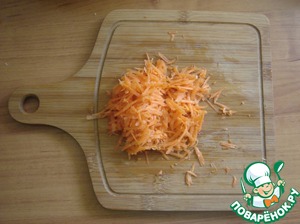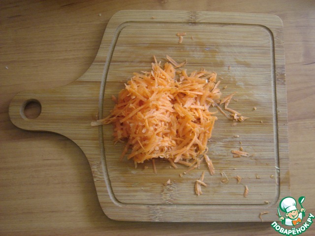 Натираем на тёрке морковь. Молодую морковь можно просто порезать. Отправляем туда же.