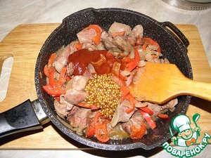 Добавляем томатную пасту, горчицу, мед, солим, перчим