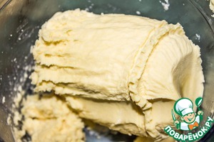 Добавляем к полученной смеси 3 столовой ложки ледяной воды, снова пробиваем. Затем добавляем по 1 ложке воду, каждый раз пробивая тесто, пока оно не станет однородным.