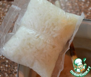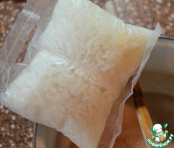 Влить 100 мл рисового отвара, посолить по вкусу.
