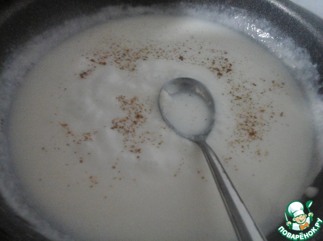 Молоко влить в сотейник или сковороду и нагреть. Добавить в него муку с растительным маслом. Варить на медленном огне до загустения постоянно помешивая. Посолить. Я еще добавила мускатный орех.