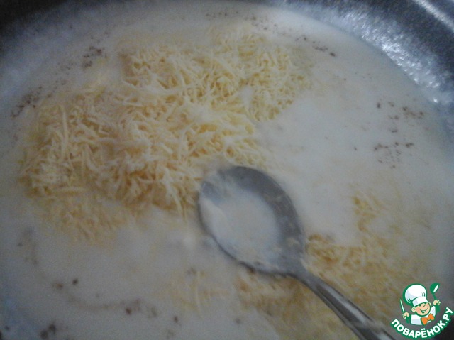 Затем добавить сыр и прогревать соус до полного растворения сыра. Конечно не забываем помешивать.