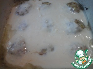 Достаем форму с ленивыми голубцами из духовки и заливаем приготовленным соусом. Опять ставим в духовку еще на 15 минут.