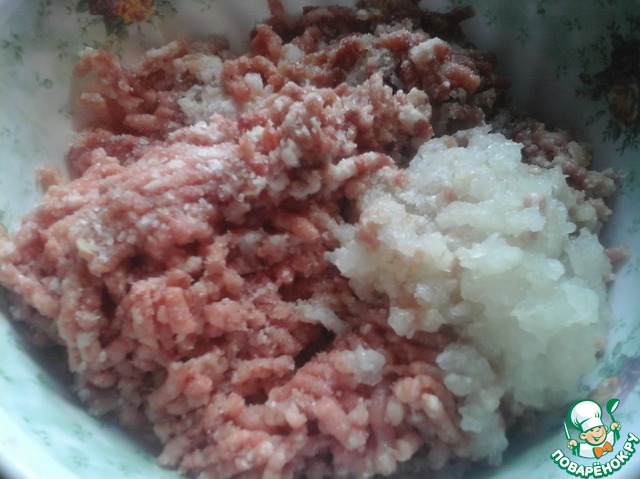Перекрутить куриное мясо и луковицу в мясорубке.