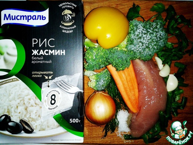 Ингредиенты для «Рис с индейкой и овощами»: