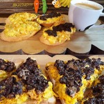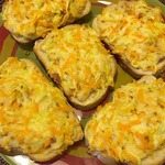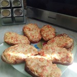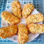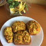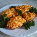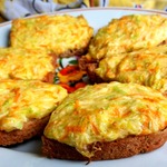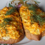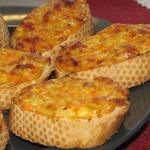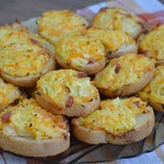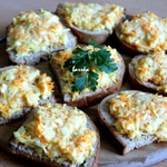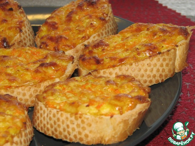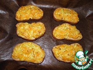 Выложить сырно-овощную смесь на тонкие кусочки хлеба