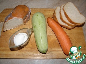 Продукты. Количество продуктов берите на ваше усмотрение, я указала приблизительно, у меня где-то на 6-7 ломтиков хлеба начинки получается: половинка моркови, половинка небольшого кабачка, сыра колбасного 150 г, 1-1,5 ст. л майонеза