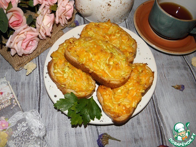 Всегда бутербродам простым доверяем! И сколько рецептов чудесных мы знаем! Еще вариант вам один предложу! Горячие так бутерброды люблю! Морковь с кабачками, настолько прекрасно! И сыр мы добавим, конечно, колбасный! Все сливочно, нежно и очень воздушно! Уж точно скажу, будет ярко и вкусно! Ручаюсь, мои дорогие друзья! Довольна останется ваша семья!