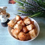 Сухарики наши уже подсохли, добавляем к ним чесночно-перцовую смесь и хорошо перемешиваем