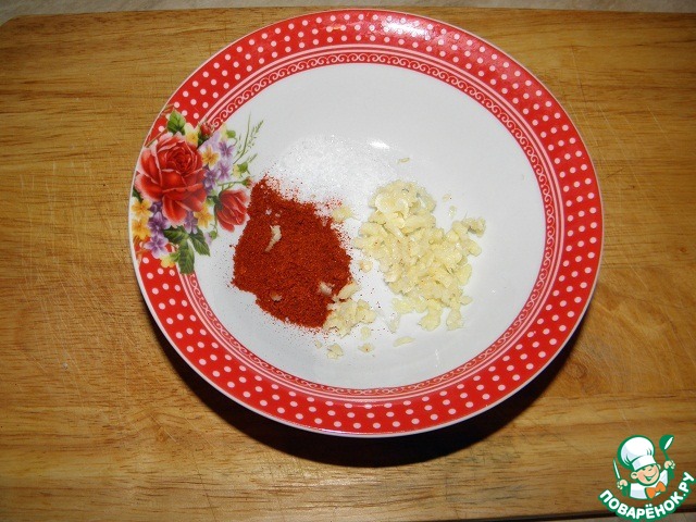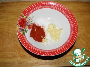 Готовим чесночно-перцовую заправку: паприка, соль, пропущенный через пресс чеснок