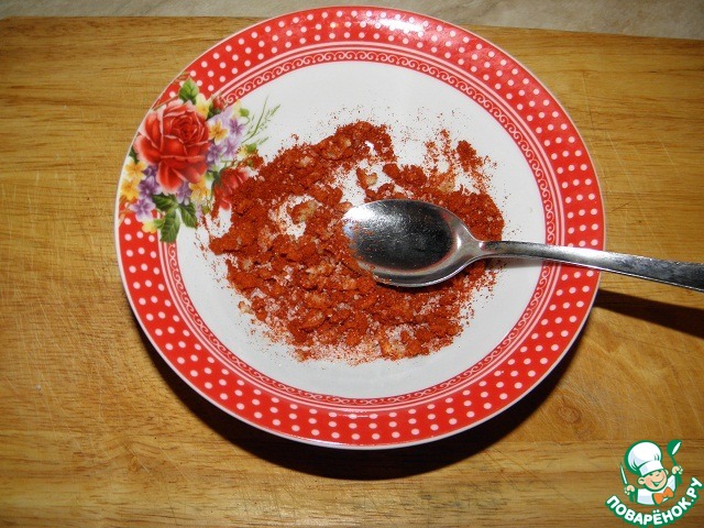 - Паприка сладкая (с горкой, можно заменить красным острым перцем, но в половину меньше его класть) — 1 ст. л.