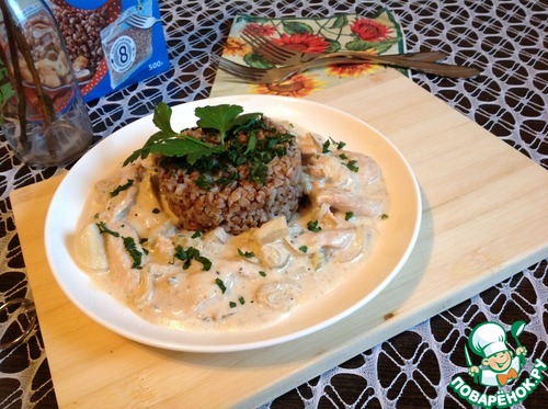 К этому времени гречневая крупа сварилась. Сервируем и подаем. При желании блюдо присыпать мелко нарезанной петрушкой. Приятного аппетита!