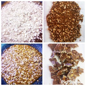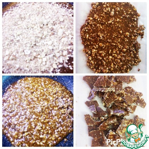 На пекарскую бумагу выкладываем равномерно карамель и даем ей остыть. Затем измельчаем. -