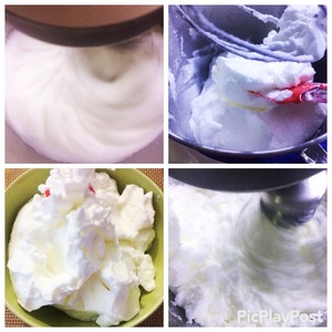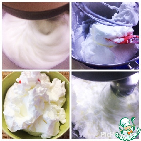 Также взбиваем и сливки. Затем соединить вместе взбитые белки и сливки, на низкой скорости вымешать до объединения в однородную массу. -