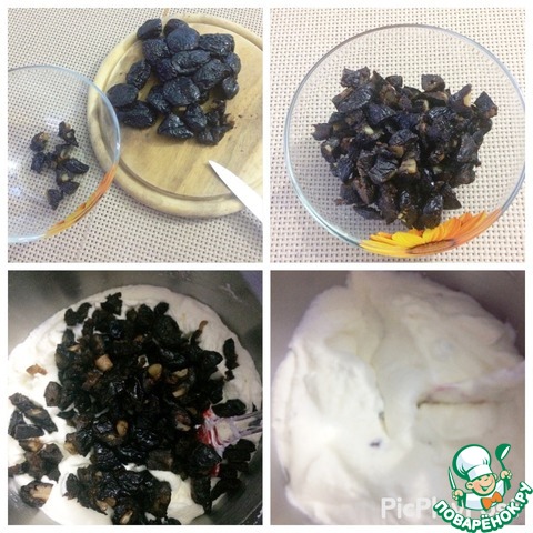 Чернослив нарезать и добавить к сливочной массе, перемешать.