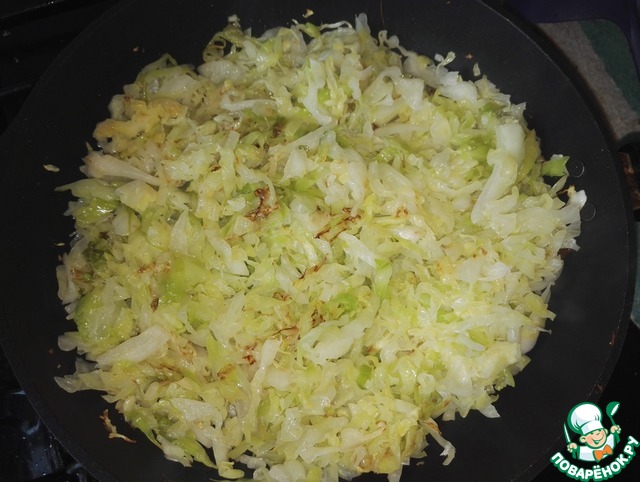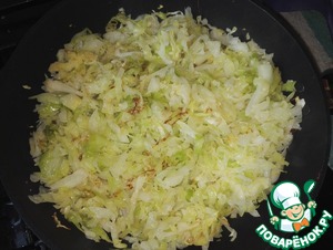 Капусту шинкуем тонкой соломкой. В сковороду заливаем масло и начинаем обжаривать капусту.