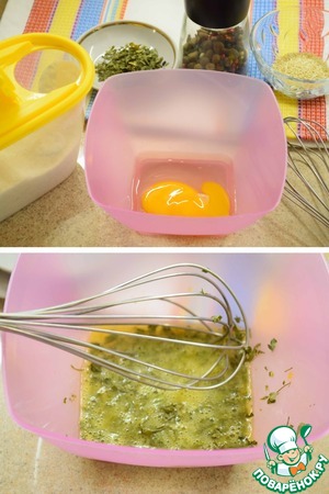 Яйцо взбить венчиком с солью, добавить петрушку, перемешать еще раз. |