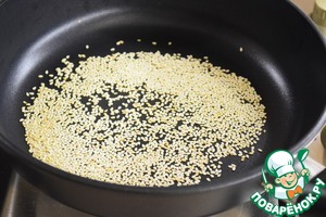 Обжарить кунжут до приятного золотистого цвета, остудить. |