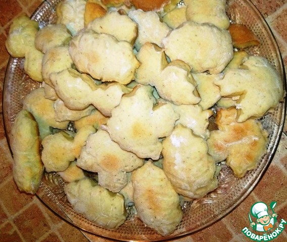 Делается быстро, раскатывала тонко, поэтому получилось примерно штучек сорок на два противня.