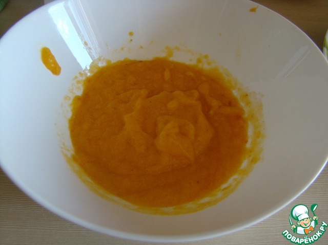 2 хурмы очистить от кожицы и косточек, мякоть измельчить блендером.