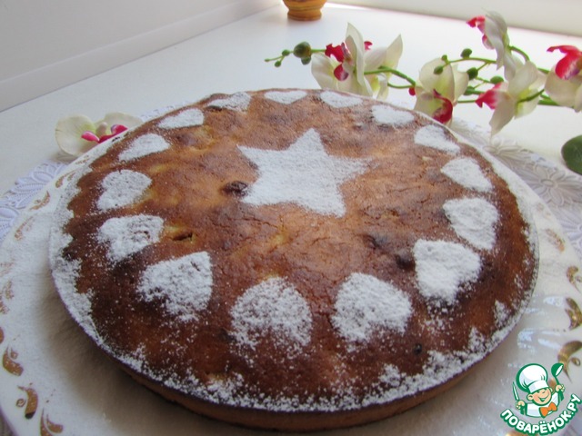 Украсить по желанию: посыпать сахарной пудрой, тертым шоколадом, полить сиропом... Я украсила пирог сахарной глазурью (уже готовой) и сахарной пудрой.