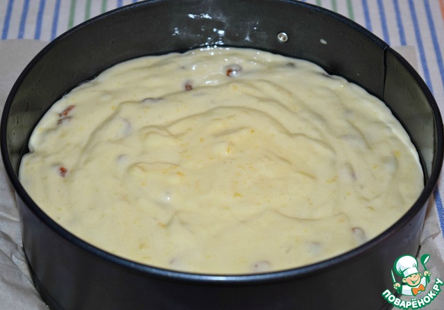 Смазать дно и бока формы растительным маслом. Выложить в форму тесто.