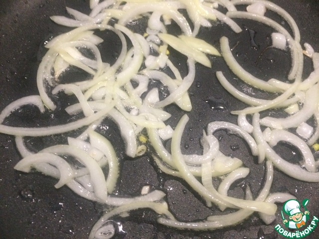 На сковороде разогреть масло и обжарить лук до прозрачности, добавить чеснок.