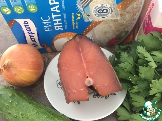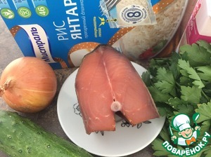 Ингредиенты для «Красная рыба с огурцом и рисом»: