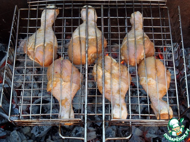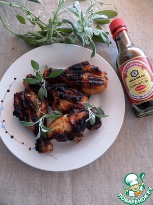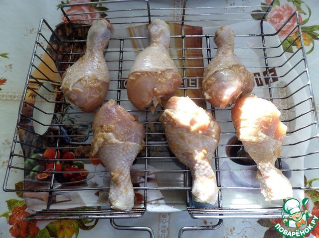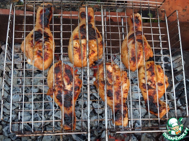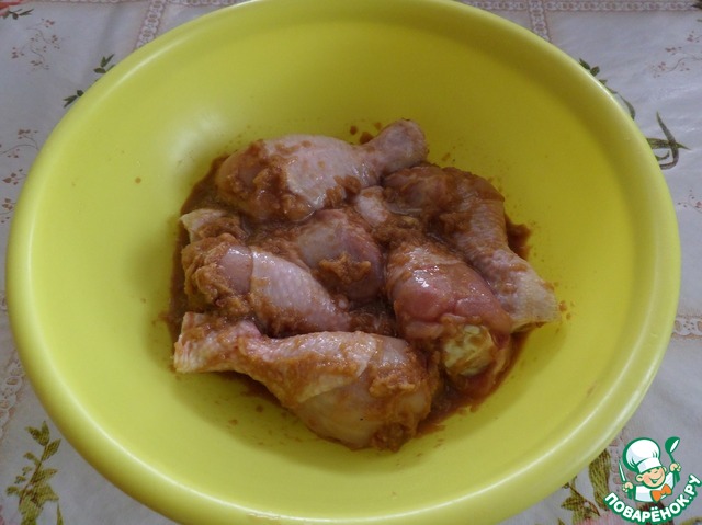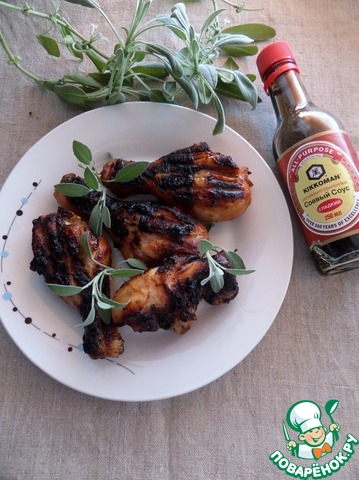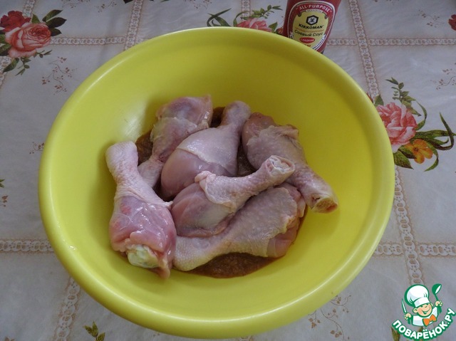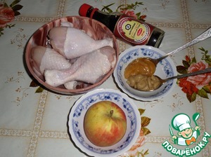 Яблоко, мед, горчица и соус "Kikkoman" - отличный маринад для куриных ножек. Готовится куриное мясо быстро! Съедается еще быстрее!!!