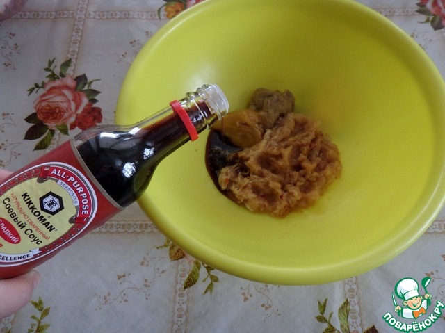 - Соевый соус ("Сладкий" ТМ "Kikkoman ") — 3 ст. л.