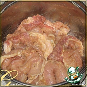 Как следует "помесить", как бы втирая горчицу в мясо. Оставить на 15 минут. -