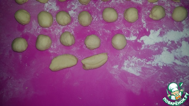 Слепить пирожки. У меня небольшие, из этого количества теста получилось 40 пирожков)))