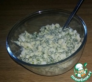Варёные яйца и лук покрошить и смешать с солью и сливочным маслом