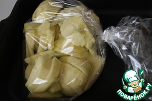 Яблоки очистить от кожуры и сердцевины, нарезать некрупно и сложить в рукав для запекания (или завернуть в фольгу). Запечь при 180-200 градусах до мягкости (около 30 минут).