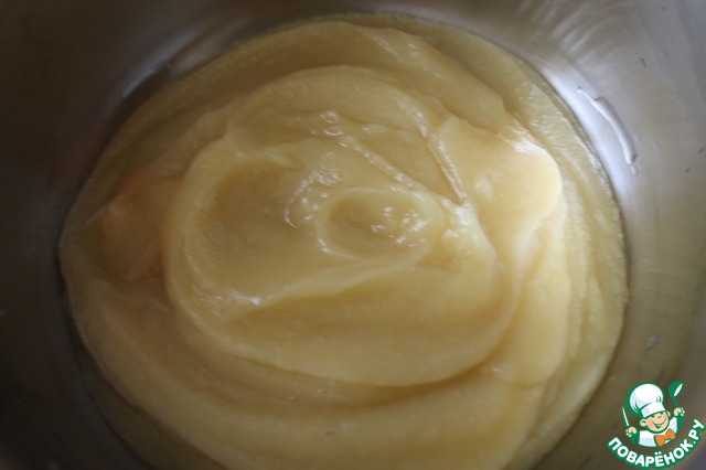 Запеченные яблоки измельчить при помощи блендера в пюре. Положить пюре в кастрюльку и поставить на нагрев.
