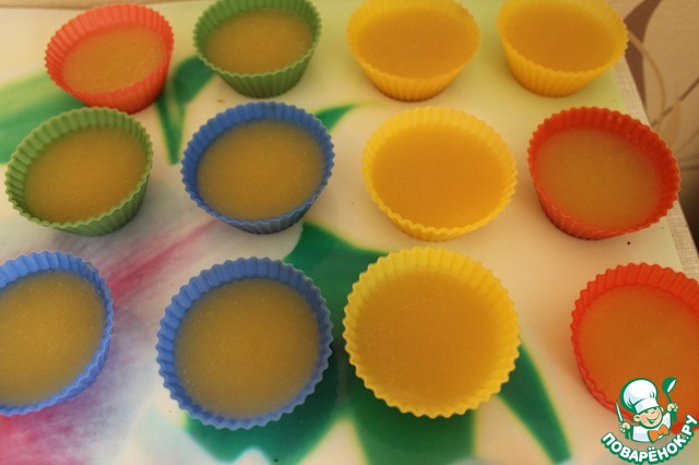 Горячий мармелад разлить по формочкам (у меня силиконовые для кексов). Через 1-2 часа его можно будет есть. Убирать в холодильник не надо - агар прекрасно застывает при комнатной температуре. Наслаждатесь полезным и вкусным домашним лакомством!))