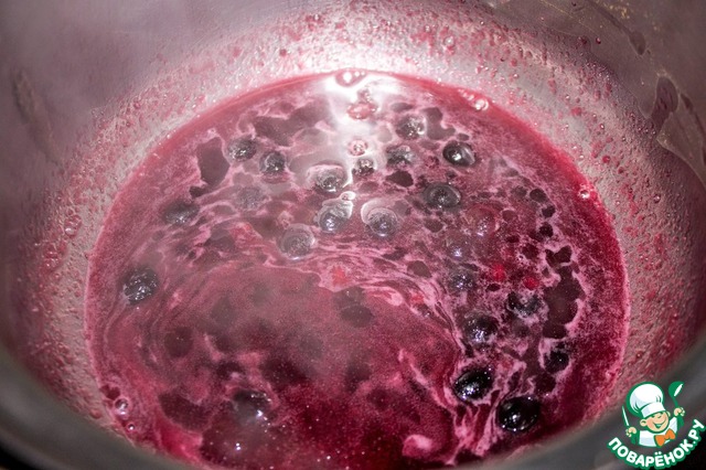 И вливаем в ягодную смесь, что стоит у нас на плите. Снова доводим смесь до кипения и варим 2 минуты, непрерывно помешивая.