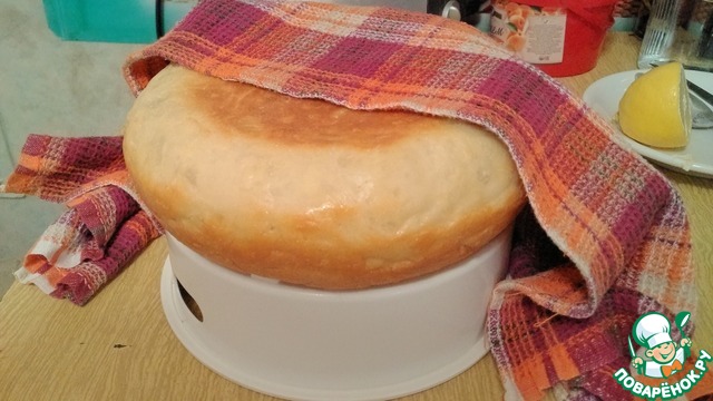 Прошел час, тесто увеличилось еще в два раза. Снизу появилась хрустящая корочка.