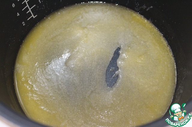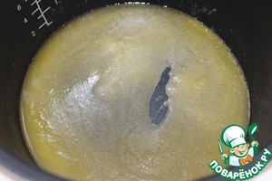 Растопить в чаше мультиварки на режиме "Подогрев" сливочное масло, добавить сахар и хорошо перемешать.