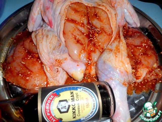 [+5]Этот маринад обязательно будет использоваться не один раз! Курица мариновалась сутки, очень здорово пропиталась ароматом чеснока, вкусом одного и другого перчика, сахар тоже отличная добавка, действует, как усилитель вкуса. Пока приготовила в духовке на решётке.