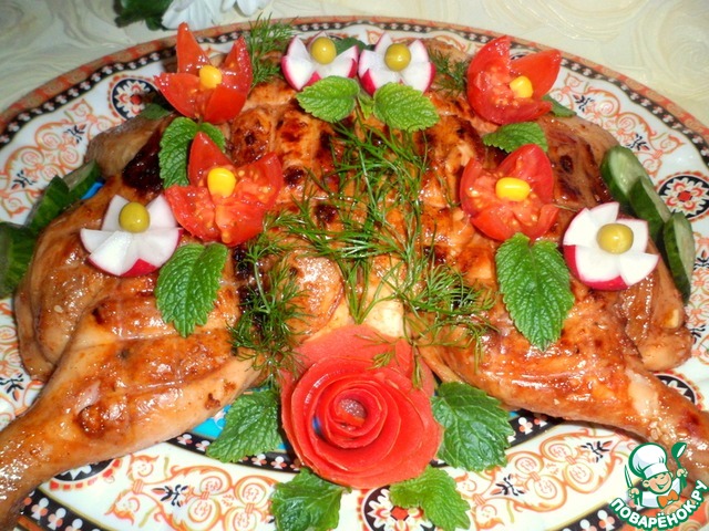 На день рождение дочери, так хотелось посидеть на свежем воздухе. Но погода этой весной не баловала. Солнышко, то выглянет, то опять уйдет за тучи, то дождь, то ветер бушевал. Общим в этот день побывали в сказке " 12 месяцев". Жарили курицу почти под зонтиком. Погода в конце-концов, разыгралась не на шутку и за стол пришлось садиться в доме. Ну это не повлияло на наше настроение и на вкус курицы, она получилась вкусная, сочная, ароматная.