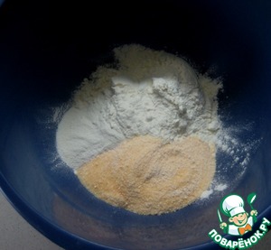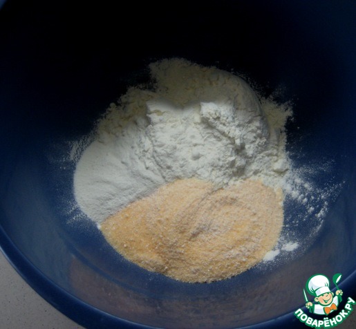 Смешать в миске сухие ингредиенты: муку, разрыхлитель теста и кисель ( у меня персиковый).