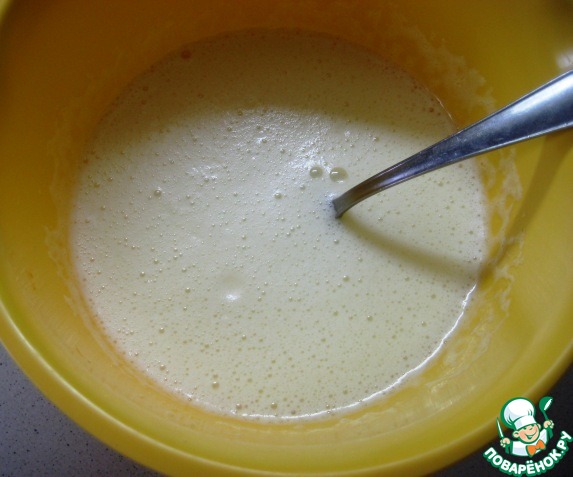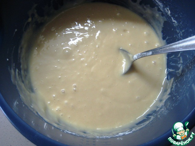 Соединить сухие и жидкие ингредиенты. Тщательно перемешать до однородности.