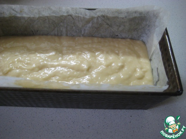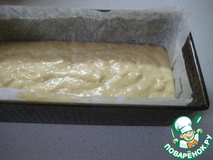 Форму для кекса застелить бумагой для выпечки, выложить тесто.