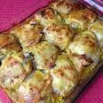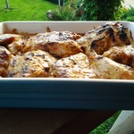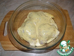 Когда курица впитает в себя маринад, выложить ее в глубокую форму для запекания (предварительно немного смазать форму растительным маслом) вместе с соусом.