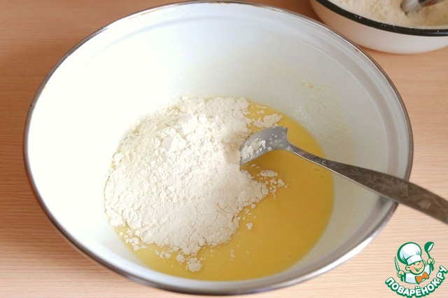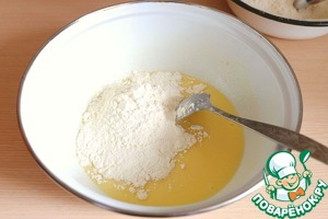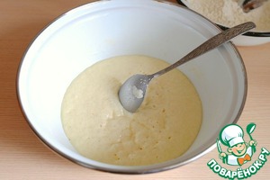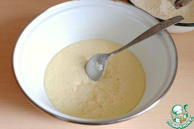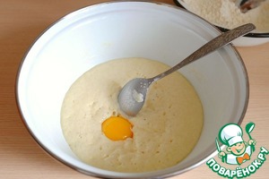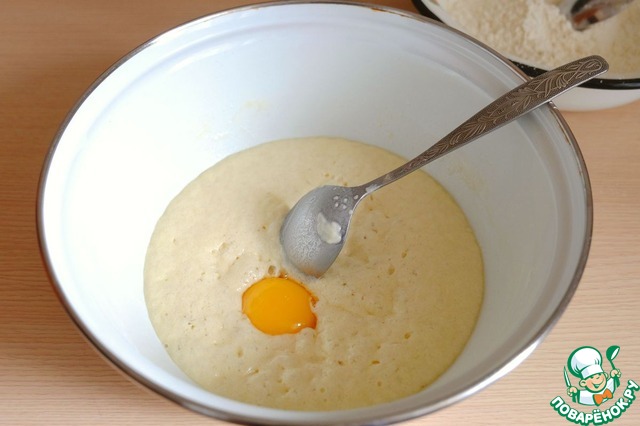 В опару добавить 1 яичный желток. Смесь размешать