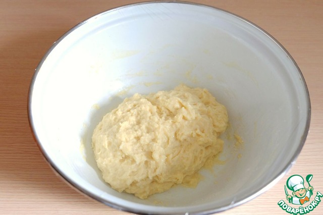 Замесить тесто. Емкость с тестом накрыть пищевой пленкой или полотенцем и поставить в теплое место для подъема. После первого подъема тесто обмять и поставить подниматься вторично. Далее можно приступить к разделке булочек