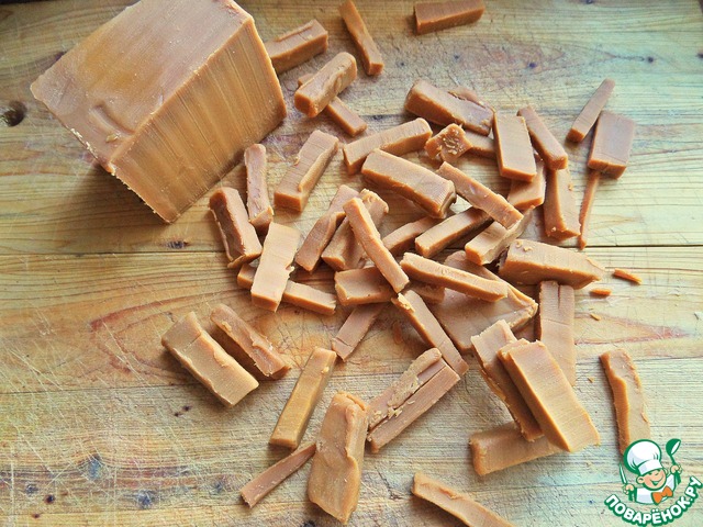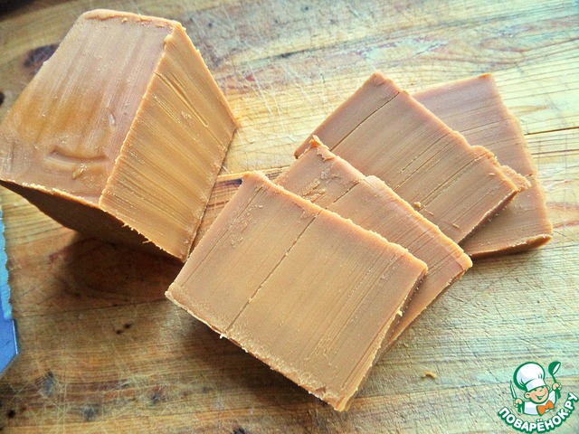 Коричневый полумягкий Финский сыр (делается путём долгого томления из ряженки, можно приготовить дома, у меня покупной) имеет особый карамельный аромат и сладковатый вкус с лёгкой кислинкой.
