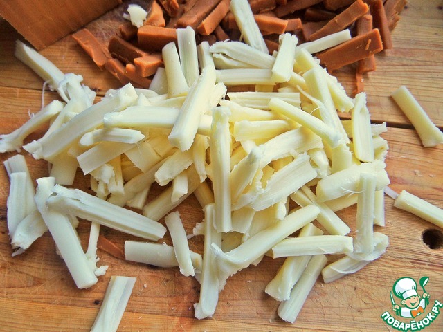 - Сыр мягкий (коричневый сыр и сыр в трубочках) — 100 г