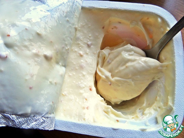 Для заправки взять любой плавленный сыр, у меня с беконом, но это не принципиально. Ложка с горкой.